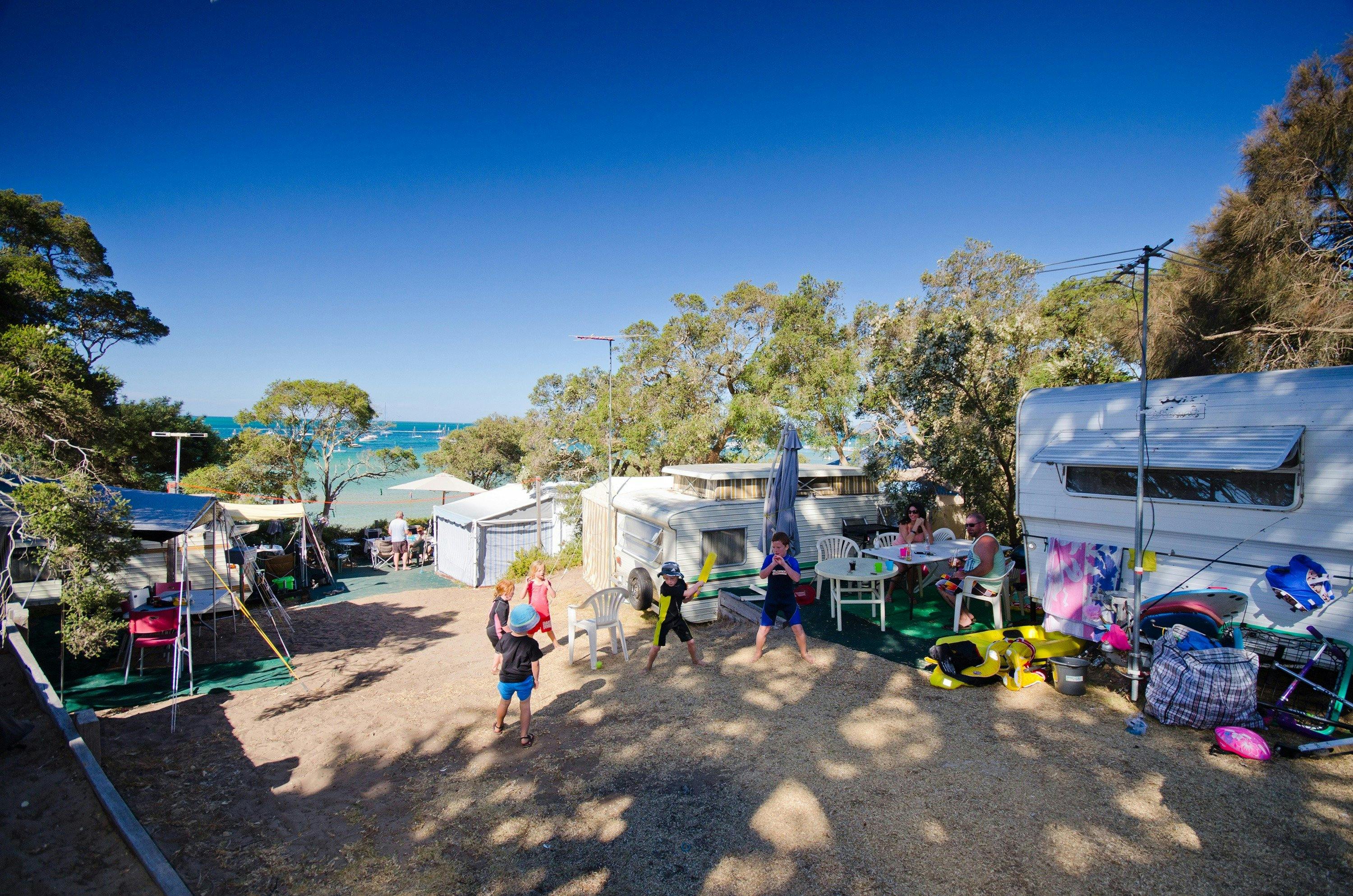 Bring your tent, caravan or motorhome and stay on a powered or unpowered campsite within walking distance to Port Philip Bay.