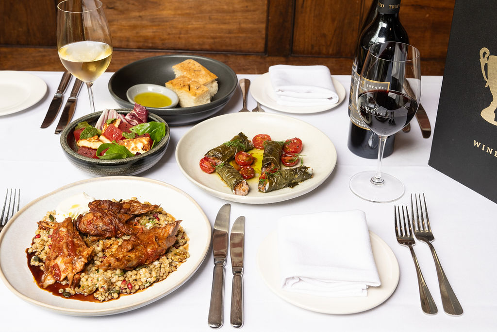 Executive Chef Andy Doughton has curated an exquisite four-course Greek banquet designed to be shared and savoured. Indulge in house-baked focaccia, roasted sardines, and chargrilled king prawns before moving on to a succulent slow-roasted lamb shoulder and pork belly souvlaki. To finish the afternoon, delight in a decadent walnut and honey syrup cake.